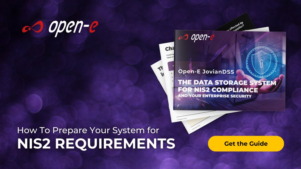 @storagesoftware Are your IT systems resilient enough to meet the new EU NIS2 standards? Discover how OpenE JovianDSS helps you tackle new requirements with immutable backups, high availability, and more. Get our Free Guide Now: open-e.com/r/dmp2/
